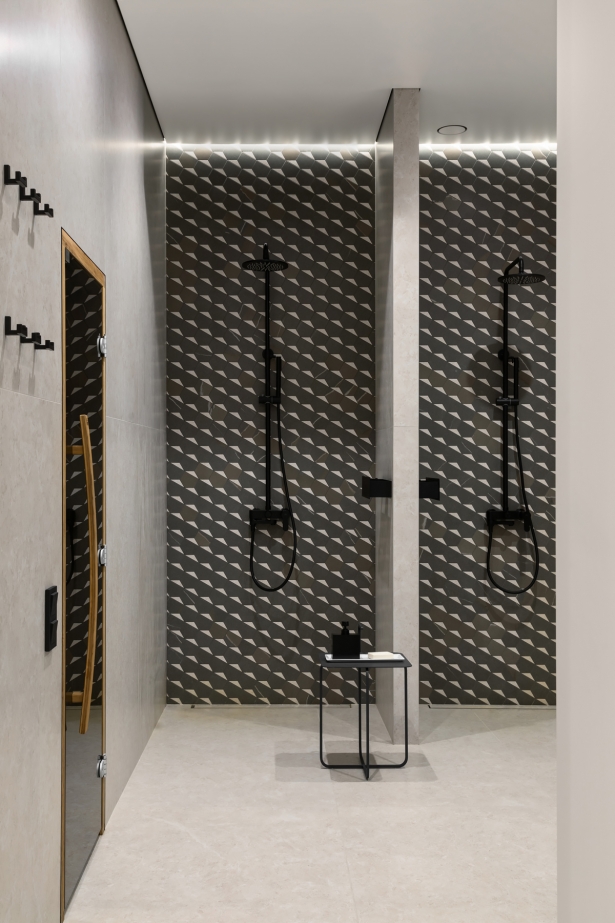 Tutto il gres porcellanato utilizzato nel progetto è firmato ITALON, con collezioni delle serie Metropolis e Materia.