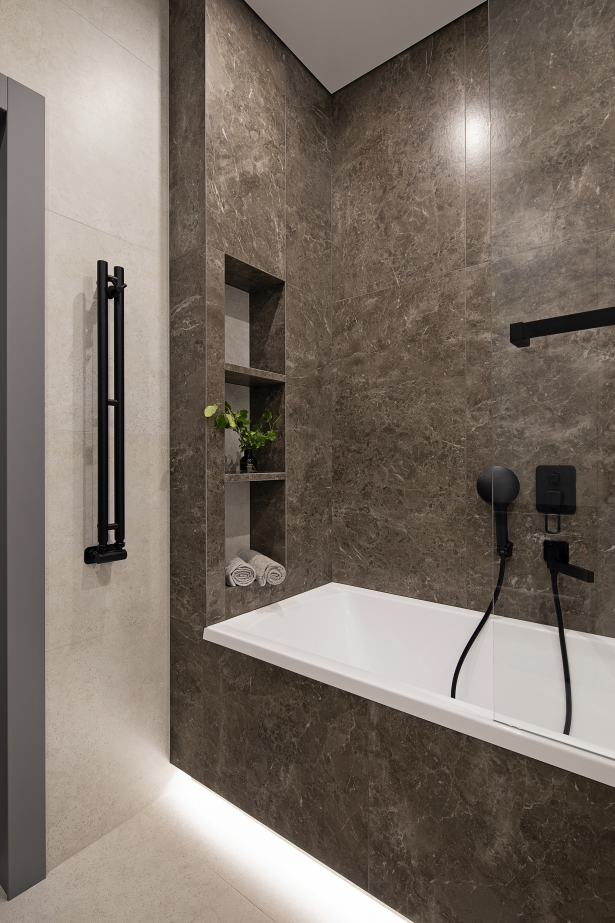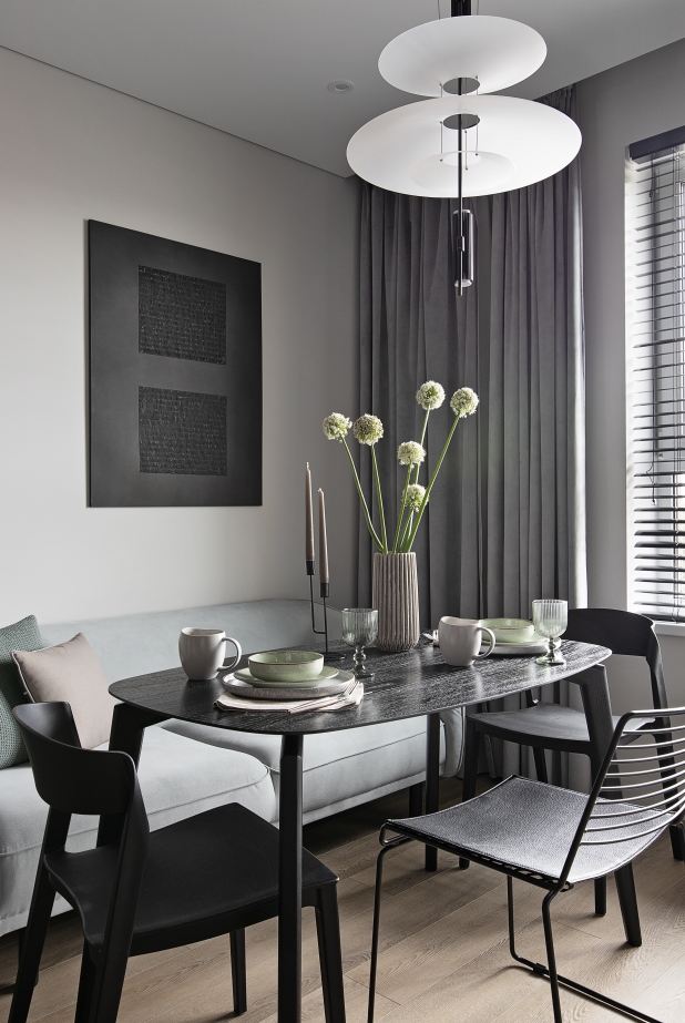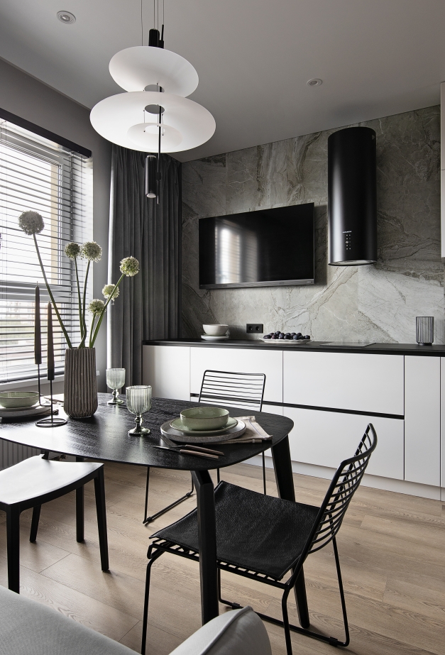 Questo progetto è stato pensato come un appartamento per l’affitto a lungo termine, con un interior moderno, elegante e accogliente. La designer Karina Eremina ha creato uno spazio sobrio e rilassante, orientato al comfort quotidiano.