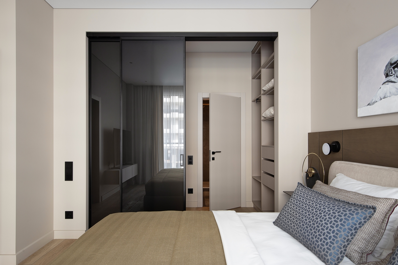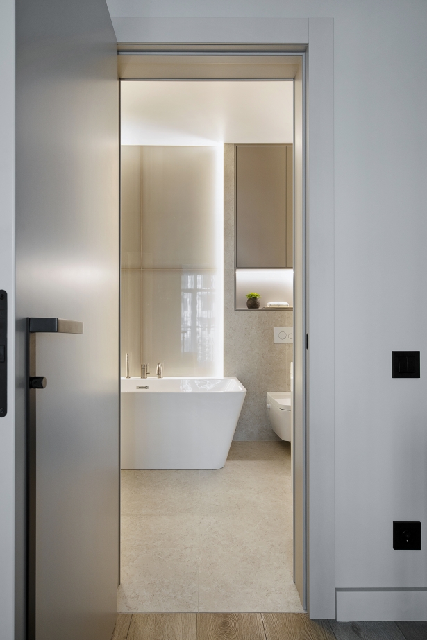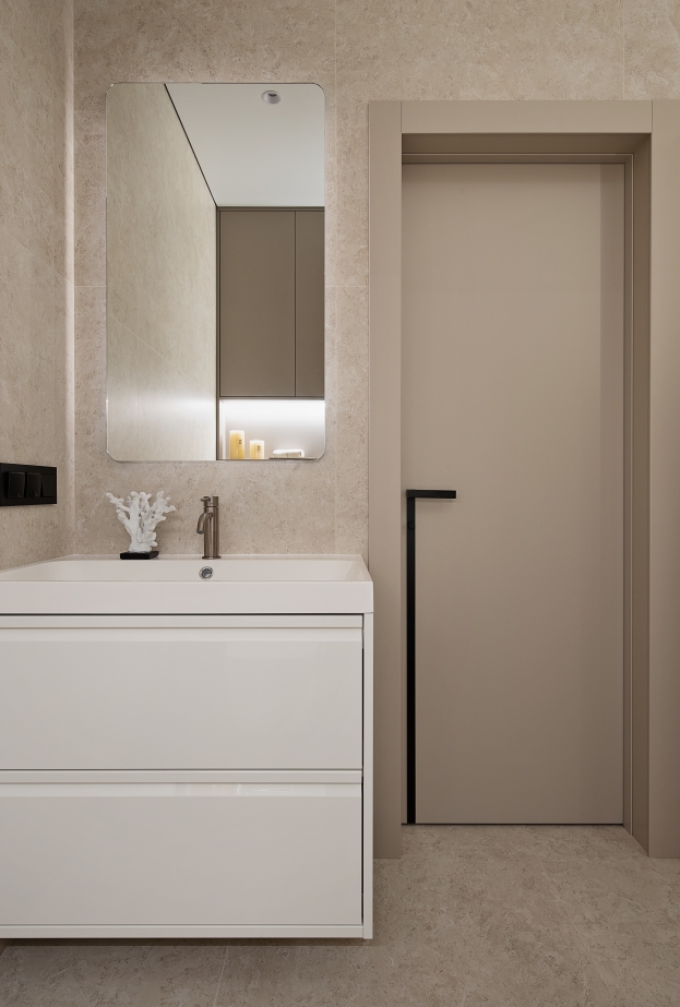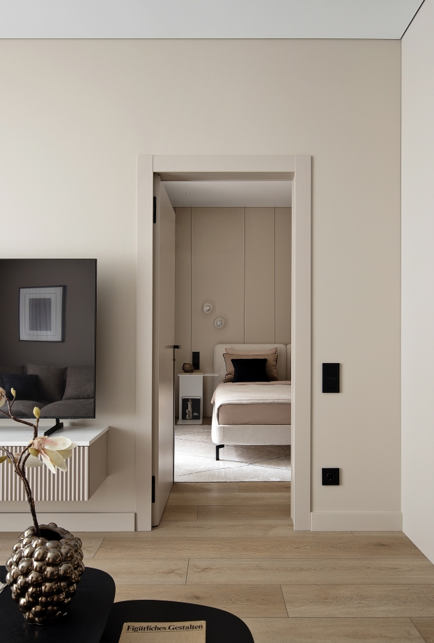 Questo appartamento è stato concepito come uno spazio accogliente per i fine settimana di una famiglia con bambini — tranquillo, tattile e curato nei dettagli. L’interior si basa su un minimalismo in tonalità beige calde, arricchito da accenti grafici come listelli a ombra, elementi neri e ferramenta a scomparsa.